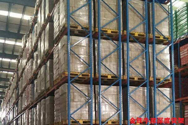 ? 雙深度重型貨架上部分客戶為提高空間使用率,采用雙深度叉車而形成的一種重型橫梁式貨架,空間利用上比橫梁式貨架提高40%-80%,適用于貨物在600kg/托盤的產(chǎn)品(雙深度叉車的承載能力比普通叉車低),最好配備擋桿來使用,這樣操作者比較容易感知里面一排貨物是否存放到位。由于高存放存在視覺誤差,對(duì)操作者的金嗯提出較高要求,貨物放偏會(huì)導(dǎo)致掉下?lián)p壞,甚至造成人員受傷,在橫梁上面可以鋪鋼板層、鋼絲層、木層板來使用,避免貨物掉落。